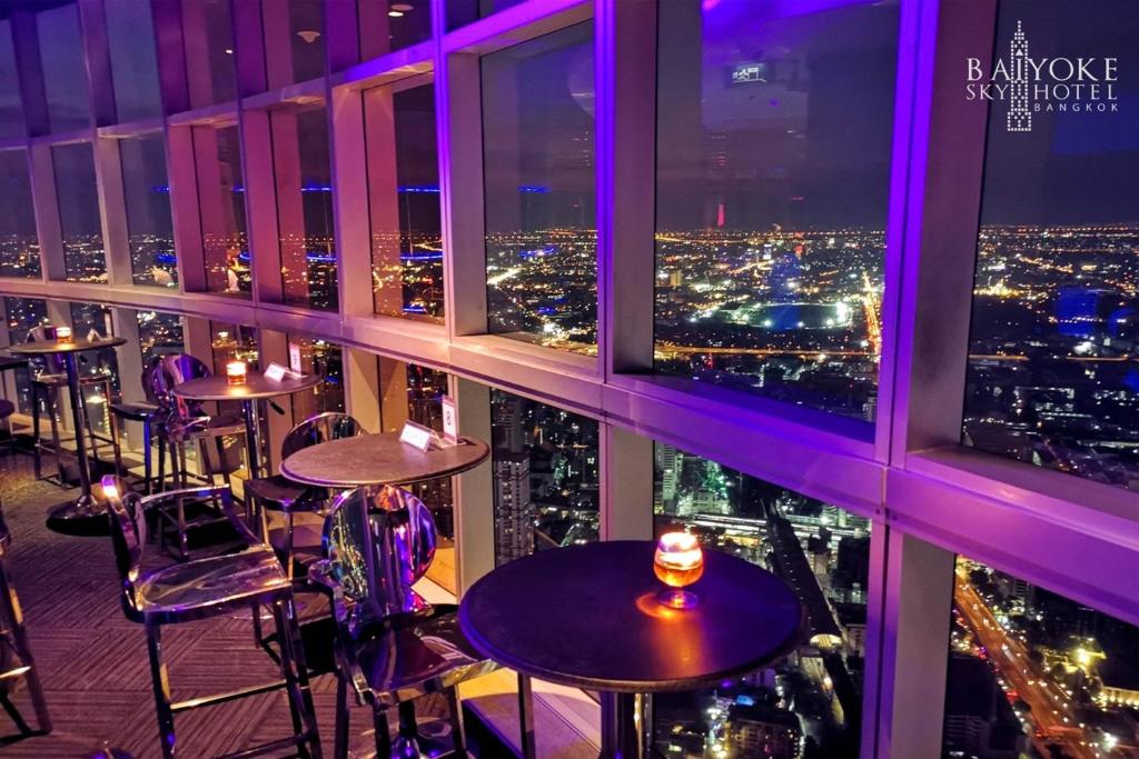 کافه 24 ساعته Sky Coffee Shop غذاهای تایلندی و بینالمللی سرو میکند. رستوران Bangkok Sky هر روز بوفهای از انواع غذاهای دریایی و بینالمللی ارائه میدهد. بار و موسیقی روی پشتبام نوشیدنی و سرگرمی زنده فراهم میکند. علاوه بر 7 گزینه غذایی، مهمانان میتوانند به گوشه بوفه میوه مراجعه کرده و طیف گستردهای از میوههای استوایی تازه مانند دوریان و منگوستین را امتحان کنند.