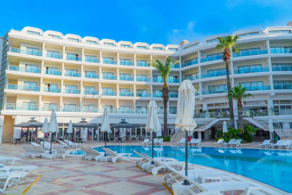 Pinta Park Marmaris Hotel offers a memorable 5-star all-inclusive experience in Muğla, featuring premium amenities such as a spa center, sauna, fitness gym, and a seasonal outdoor swimming pool. Guests enjoy free WiFi, a lush garden, and a restaurant serving a variety of international dishes.