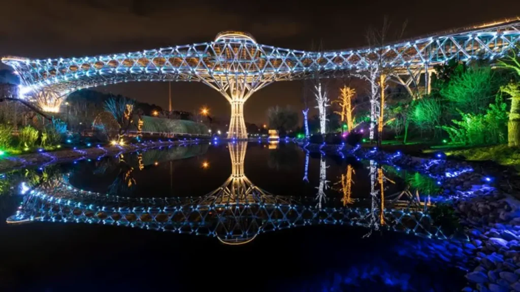 5.پل طبیعت:بنایی مدرن و نمادین که پارک طالقانی را به پارک آب و آتش متصل می‌کند. طراحی ارگانیک و سه‌طبقه این پل با نمای شبیه درخت، آن را به یکی از جاذبه‌های مدرن و محبوب تهران تبدیل کرده است.