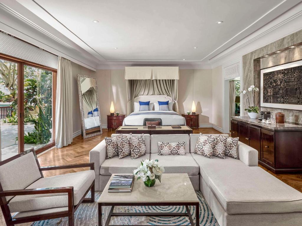 SOFITEL BALI NUSA DUA BEACH RESORT offers a luxurious beachfront retreat with a large outdoor swimming pool, lagoon pool, hot tub, and a spa and wellness center. Guests can also enjoy complimentary Wi-Fi access.