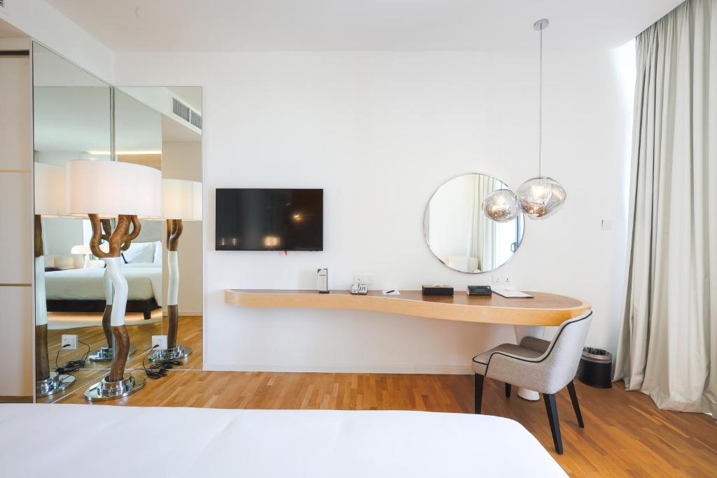 THE RIYAZ LAVANYA LANGKAWI features a fitness center, shared lounge, and a sun terrace with a swimming pool in Pantai Cenang. This 4-star hotel offers a restaurant, bar, sauna, and hot tub, along with room service, concierge assistance, and tour arrangements.